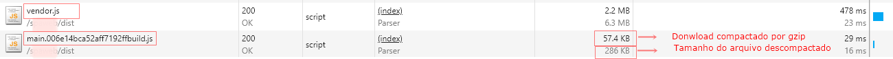 Na imagem abaixo mostro os arquivos que são baixados numa aplicação em produção, com o gzip ativado no servidor: