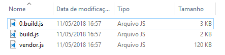 Ao gerar uma nova versão ele irá adicionar em um arquivo vendor.js todas as dependências da node_module usadas no projeto. Geramos uma nova build com o comando npm run build e a nova saída será: