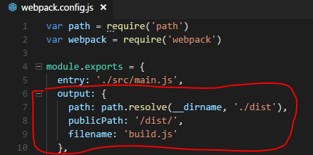 A propriedade de saída informa ao webpack onde emitir os bundles que ele cria e como nomear esses arquivos, o padrão de arquivo de saída que o Vue-cli cria é ‘.build.js’ e a pasta para qualquer outro arquivo gerado é a ‘./dist’.