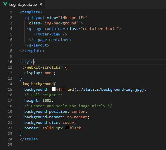 Como queremos proteger a nossa aplicação com uma autenticação, não iremos usar o layout padrão que já vem pré-definido no quasar. Criamos outro Layout chamado LoginLayout.vue no diretório src/layouts com o seguinte código: