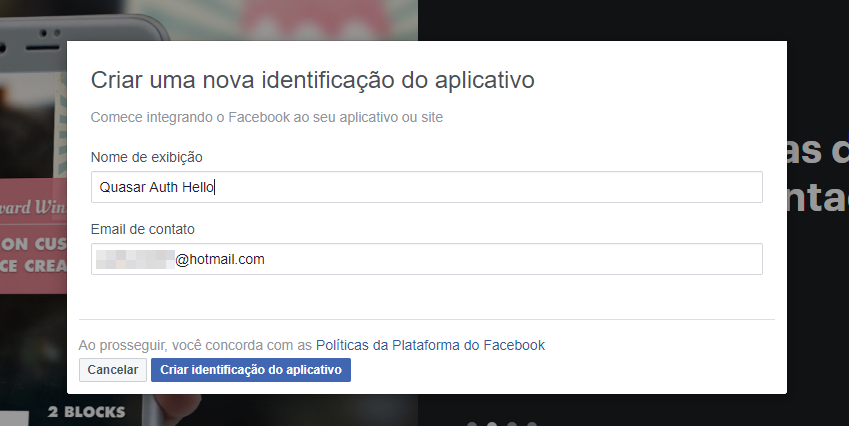 Criando uma aplicação no Facebook for Developers