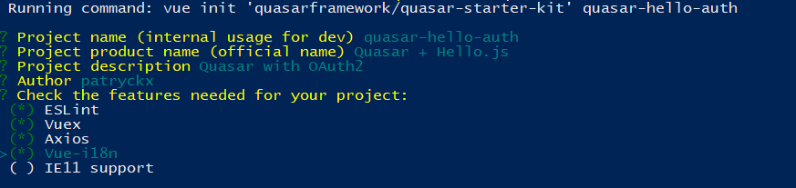 quasar init quasar-hello-auth