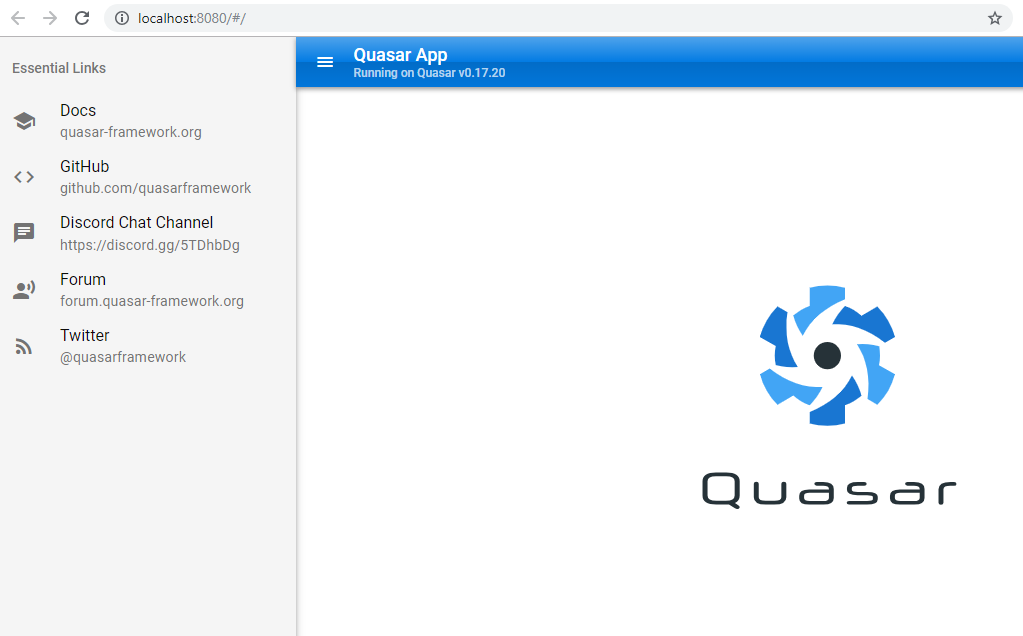 Como framework front-end utilizarei o Quasar na sua versão 0.17.20.