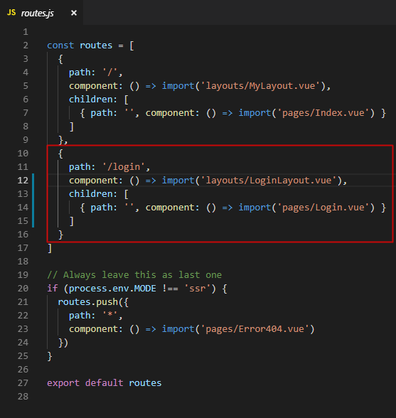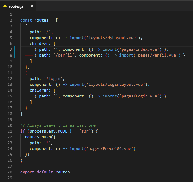 E claro, não esquecer de criar uma rota para essa página no arquivo routes.js no diretório src/router: