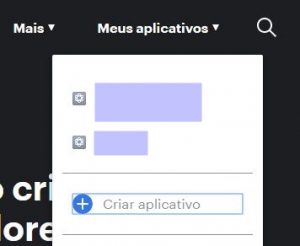Após acessar o site, selecionar “Meus aplicativos” e clicar em “Criar aplicativo”.