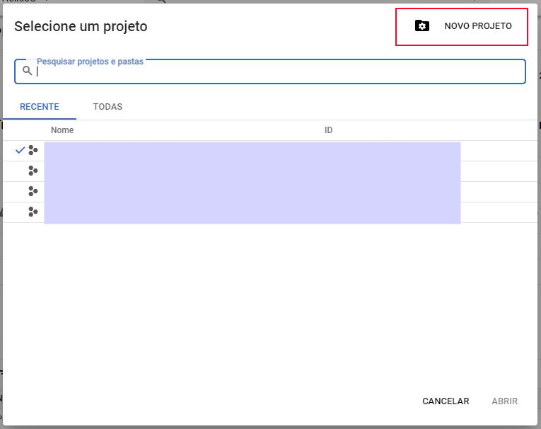 Acessar o Console de Desenvolvedores do Google e criar um novo projeto.