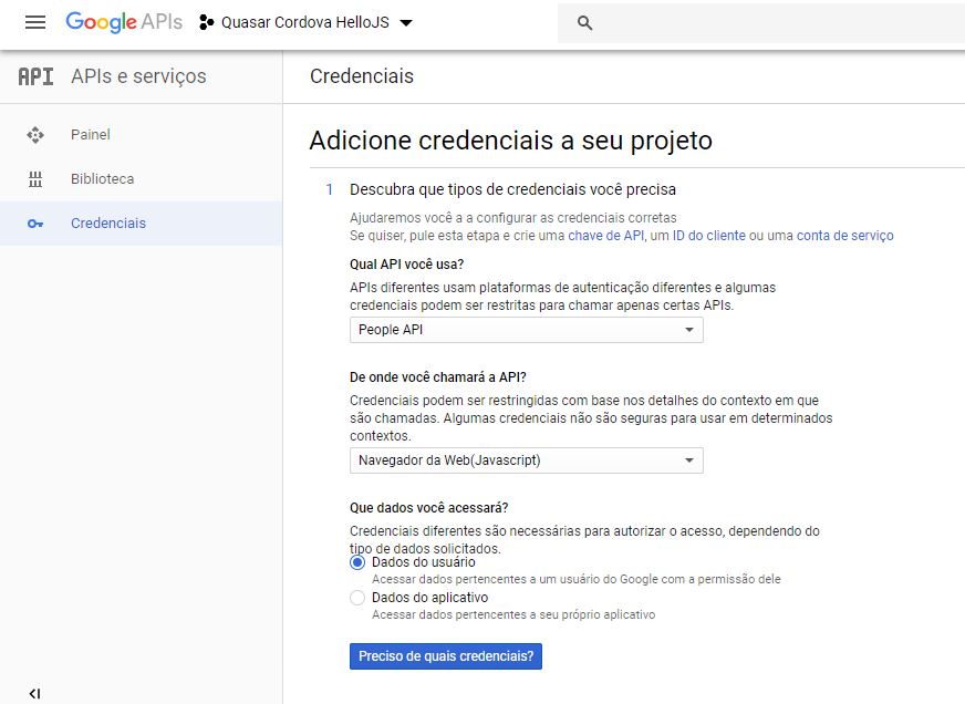 Baixe o projeto de teste desenvolvido com Quasar v1.0, Cordova e Hello.js através desta URL: https://github.com/lucianopereira86/quasar-cordova-hellojs