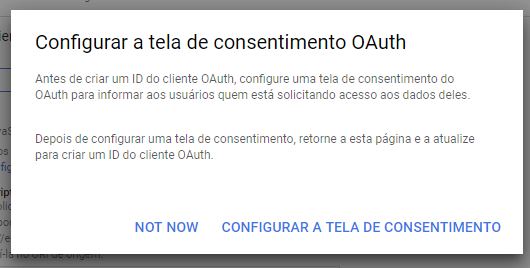 Na janela que abrir, pressionar em “CONFIGURAR  A TELA DE CONSENTIMENTO”.
