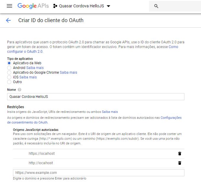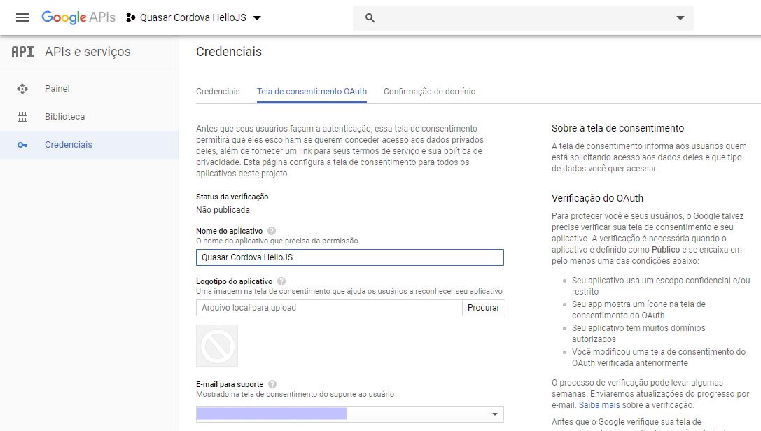 Autenticação em redes sociais com Quasar, Cordova e Hello.js