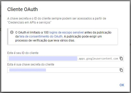 • criar um nome para o ID do cliente OAuth;