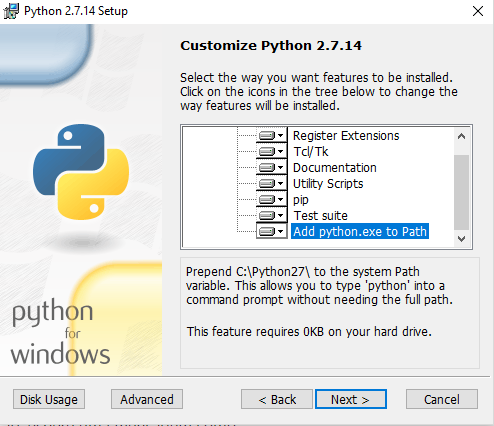 Baixe e instale o Python 2.7.14.