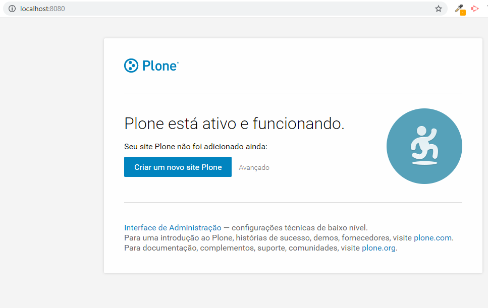 Após o término da instalação, o Plone ainda não está em execução. Se faz necessário iniciá-lo.